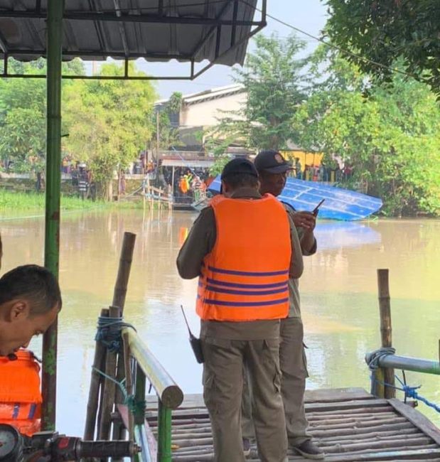 Surabaya~www.pilarcakrawala.news|Insiden perahu terbalik terjadi di Tambangan terjadi di Pabrik PT Pakabaja Jl.Raya Mastrip Kemlaten Kecamatan Karangpilang dan Satu penumpang perahu dinyatakan hilang dengan beberapa motor ikut karam di badan perahu. Sabtu(25/3/2023).