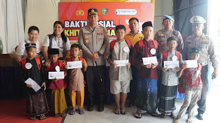Kapolresta Sidoarjo Komisaris Besar Polisi Kusumo Wahyu Bintoro, hadir meninjau langsung pelaksanaan khitan massal ceria. Serta menyerahkan bingkisan kepada para peserta khitan.