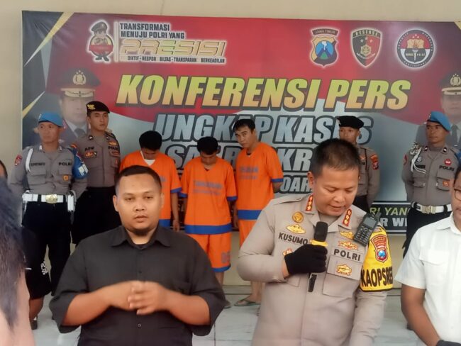 Kapolresta Sidoarjo Kombes Pol Kusumo Wahyu Bintoro dalam press release di Mapolresta Sidoarjo mengatakan,”Tiga pelaku pengoplos tabus gas LPG Bersubsidi yang berhasil diamankan diantaranya, K.M (45) warga Ds. Panjunan Kec. Sukodono kab. Sidoarjo, S.R (30) warga Ds.Janjang Wulung Kec.Puspo Kab Pasuruan, R.P (27) warga Ds.Kepuh Kemiri Kec.Tulangan Kab. Sidoarjo”, ungkap Kombes Pol Kusumo.Senin (26/6/2023).