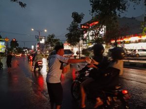 Pembagian takjil menyasar pengunjung GOR Gelora delta Sidoarjo Dan juga pengguna jalan yang melintas di depan pintu selatan GOR Sidoarjo,