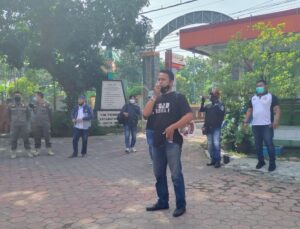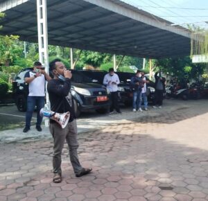 Dalam orasi nya Hariyanto menyampaikan, “Kami meminta penjelasan,pertanggung jawaban dan sekaligus memberikan teguran serta kami meminta untuk berdialog langsung dengan Camat plt Buduran Bapak Aan Alifauzansyah terkait adanya 150 peserta perangkat desa dari 15 desa di buduran terpapar covid19 setelah pulang dari bimtek 25-27 Juni 2021 di Jogja.”Ucapnya.