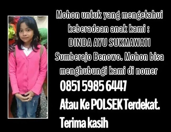 Sebelumnya, Dinda Ayu Sukmawati (11), warga Sumberejo, Kecamatan Benowo kabur dari rumah dan tak kembali. Kedua orang tuanya Mariana (35) dan Dimas Waliputra (32) yang diliputi rasa khawatir kemudian menyebar foto dan mencari siswi kelas SD itu.