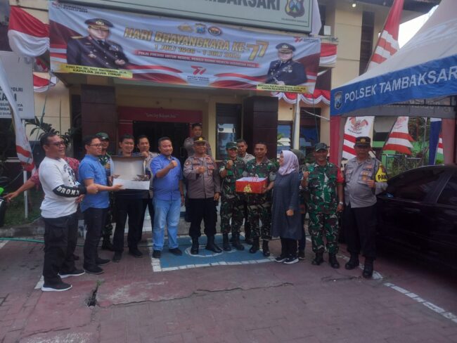 Sinegritas TNI- Polri dan Kecamatan Tambaksari ditunjukkan dengan mantap oleh anggota Koramil Tambaksari dan Kecamatan Tambaksari dibilang tahun Bhayangkara Ke-77, Senin (3/7/2023).
