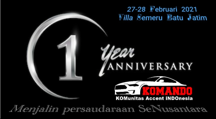 Anniversary Komando (Komunitas Accent Indonesia) yang pertama diadakan di Villa Semeru Batu, Malang Jawa Timur pada hari Sabtu dan Minggu tgl 27-28 Februari 2021.