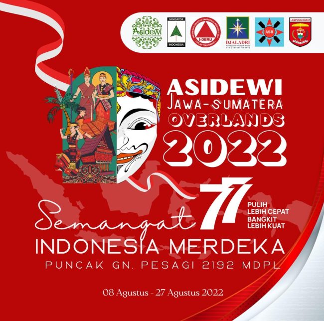 Setelah sukses “ASIDEWI Java-Sumatera Overland 2022‘ tahap 1 pada pada tanggal 6 – 28 Mei 2022 lalu di mana perjalanan tahap 1 Asidewi telah menyambangi beberapa Desa Wisata di Pulau Jawa dan Sumatera. Perjalanan dimulai dari ujung timur pulau Jawa, yakni Kabupaten Banyuwangi dan finis di Kabupaten Lampung Barat yang berada di pulau Sumatera.