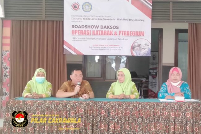 Pilar Cakrawala ~Sidoarjo |Komisi Daerah (Komda) Lanjut Usia (Lansia) Kabupaten Sidoarjo bersama Klinik Mata EDC menggelar bakti sosial operasi katarak dan pteregium gratis di empat kecamatan di wilayah Sidoarjo, Dalam rangka memperingati hari lansia tahun 2022.Bertempat di Pendopo Kecamatan Tulangan.Jumat (5/8/2022).