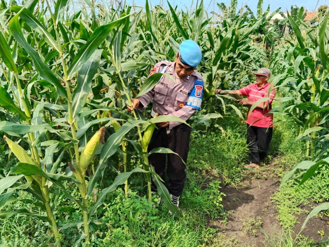 Bhabinkamtibmas Desa Kesambi Dukung Ketahanan Pangan, Melalui Penanaman Jagung di Lahan Pekarangan Pangan Bergizi