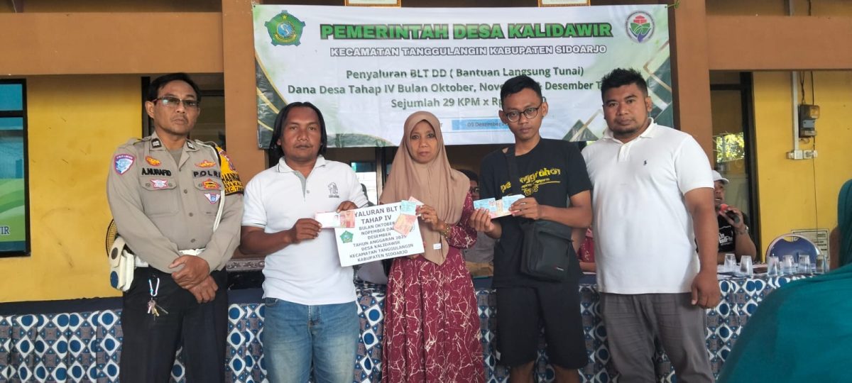 Sidoarjo//www.pilarcakrawala.news| Pemerintah Desa Kalidawir menyalurkan Bantuan Langsung Tunai Dana Desa (BLT DD) kepada 29 Keluarga Penerima Manfaat (KPM) pada Jumat (05/12). Penyaluran dilakukan di pendopo desa dan berlangsung lancar serta tertib.
