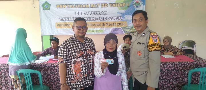 SIDOARJO~www.pilarcakrawala.news|Penyaluran bantuan langsung tunai Dana Desa (BLT DD) Kludan Kecamatan Tanggulangin Kabupaten Sidoarjo, dilaksanakan dengan terlihatnya keluarga penerima manfaat berada dipendopo desa dengan dihadiri oleh Pendamping desa dan sebagai pengamanan babhinkamtibmas beserta babinsa. Selasa, 25 Maret 2025