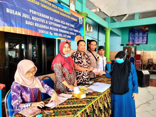 Sidoarjo~www.pilarcakrawala.news|Terlihat beberapa masyarakat memadati pendopo desa Kedungbanteng kecamatan Tanggulangin kabupaten Sidoarjo Jawa timur, menyalurkan bantuan langsung tunai dana desa (BLT DD) Selasa,05-09-2023.