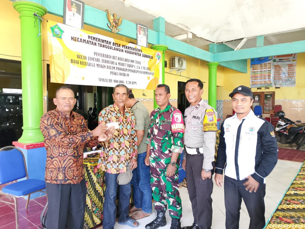 SIDOARJO~www.pilarcakrawala.news|Penyaluran bantuan langsung tunai Dana Desa (BLT DD) Penatarsewu dilaksanakan dengan terlihatnya keluarga penerima manfaat berada dipendopo desa dengan dihadiri oleh Pendamping desa dan sebagai pengamanan babhinkamtibmas beserta babinsa. Selasa, 20 Maret 2025.