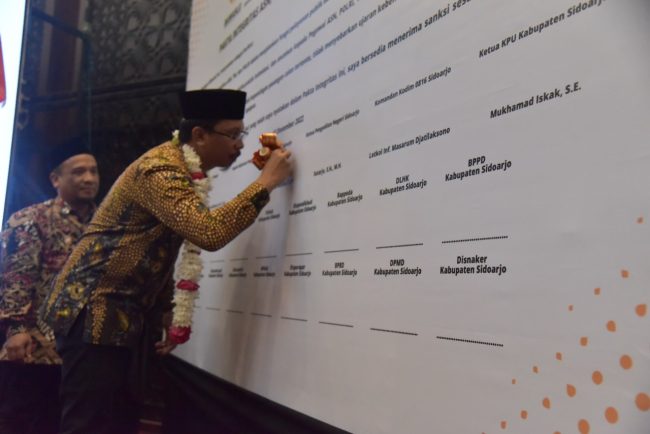 Kapolresta Sidoarjo, Komandan Kodim 0816 Sidoarjo Kepala Kejaksaan dan Ketua DPRD Kabupaten Sidoarjo pada kesempatan tersebut menuliskan deklarasi, serta menandatangani pakta inegritas ASN, Plri dan TNI.