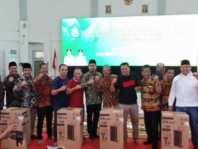 Pembagian sound sistem ini secara simbolis di serahkan langsung oleh Bupati Sidoarjo pada ketua RT yang hadir di aula BLK.