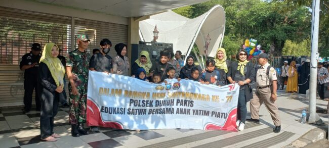 Surabaya~www.pilarcakrawala.news|Dalam rangka menyambut HUT Bhayangkara ke-77 Polsek Dukuh pakis bersama anak yatim piatu berikan edukasi satwa di Kebun Binatang Surabaya Jl.Setail Surabaya,Kamis (22/6/2023).
