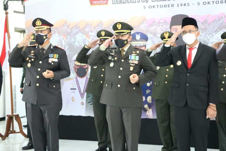 Dandim 0816/Sidoarjo Bersama Forkopimda Ikuti Upacara HUT Ke-76 TNI Secara Virtual