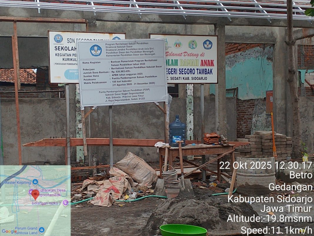 SIDOARJO//www.pilarcakrawala.news| Salah satu kegiatan pembangunan di lingkungan satuan pendidikan di Desa Segoro Tambak, Kecamatan Sedati, Kabupaten Sidoarjo, menjadi sorotan. Proyek yang menelan anggaran enam ratus dua puluh sembilan juta rupiah itu diduga dilaksanakan tanpa pengawasan ketat dari pihak konsultan pengawas, sehingga dinilai berpotensi membahayakan keselamatan para siswa.