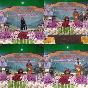 Sidoarjo~www.pilarcakrawala.news|Suasana kehangatan dan keceriaan menyelimuti acara Halal bihalal yang di gelar oleh Dikbudcam bersama PGRI cabang Tulangan kabupaten Sidoarjo di Aula SMPN 1 Tulangan kabupaten Sidoarjo. Acara ini berhasil menarik perhatian banyak peminat dengan menghadirkan kehadiran Ustadzah terkenal, Ning Umi Laila.