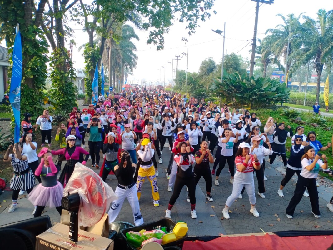 Ribuan masyarakat antusias mengikuti irama senam Eby Than yang enerjik, juga goyangan music Dangdut’an sobo kampung dengan penampilan Gen Z nya,