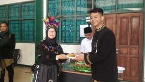 di sambung pemotongan tumpeng oleh Haris di serahkan kepada Dekan FHS Rachmat Ihya’, S.H.I., SH , M.H.I., MH., dan  juga Harle menyerahkan kepada Kaprodi, Haniyah,SH,MH.