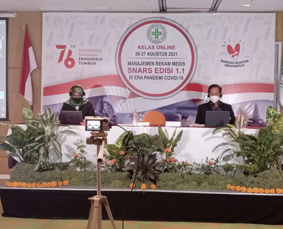 Kegiatan yang berlangsung 2 hari, kamis dan jumat ( 26-27/08/2021 ) bekerjasama dengan Komisi Akreditasi Rumah Sakit ( KARS), serta di dukung IDI, PPNI dan juga PORMIKI ini di ikuti 564 peserta online nakes Rekam medis dari rumah sakit seluruh Indonesia.