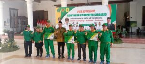 Sebagai Apresiasi Pemerintah Sidoarjo, Gus Muhdlor juga menyematkan Seragam Kontingen kepada perwakilan atlet dan juga BPJS.