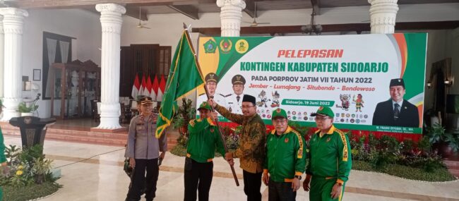 Acara resmi pelepasan kontingen Sidoarjo di tandai dengan penyerahan panji Sidoarjo oleh Gus Muhdlor kepada Ketua umum KONI Sidoarjo M. Franki Effendi di dampingi Kepala Disporapar Sidoarjo dan Ketua DPRD kabupaten Sidoarjo.