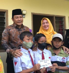 Wabub Sidoarjo bersama kelapa sekolah SDN Entalsewu dan donatur cilik dari SDN Entalsewu.