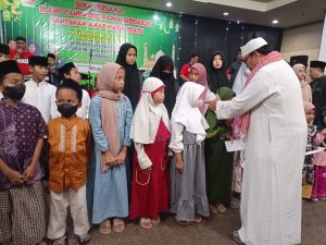 ” Berkat para donatur dan panitia semua, hari ini kita bisa berbagi kebahagiaan, semoga anak yatim piatu ikut berbahagia.” tutupnya.