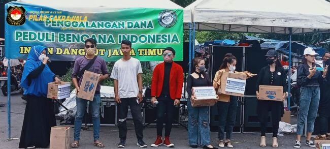 Pilar Cakrawala ~ Sidoarjo, Minggu 20/2/2022 IDJ (InsanDangdut Jawa timur) komunitas yang terdiri dari Seniman artis Jawa timur,pencipta,dancer,model,acting,penyanyi, musik,MUA,simpatisan peduli ddt, melakukan aksi menggelar Aksi sosial kemanusiaan peduli Erupsi Gunung Semeru di kota Sidoarjo.