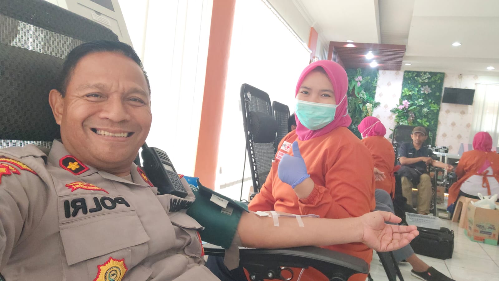 Pada kesempatan ini Kapolsek Dukuh Pakis Kompol Achmadi, SH menyumbangkan darahnya dengan dilakukan pengecekan kesehatan oleh tenaga kesehatan PMI Kota Surabaya selanjutnya setelah dinyatakan memenuhi syarat kesehatan lalu dilakukan transfusi darah.(Bs)