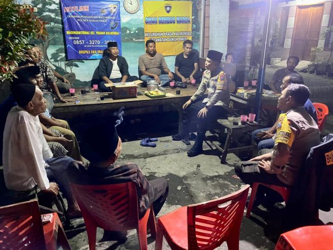 Pada pelaksanaan pemantauan kamtibmas wilayah malam ini Kapolsek Dukuh Pakis melaksanakan nongkrong bareng bersama warga masyarakat kelurahan Pradah Kalikendal di rumah rembug warga yang berada di Dukuh Kalikendal Surabaya.