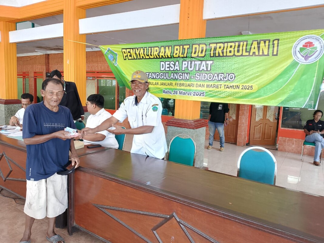 SIDOARJO~www.pilarcakrawala.news|Rabu (26/04/25), Puluhan penerima manfaat dengan wajah bahagia berkumpul dipedopo Desa Putat Kec. Tanggulangin Kab. Sidoarjo, dalam penyaluran Bantuan Langsung Tunai Dana Desa (BLT DD), Kegiatan dilaksanakan mulai pukul 10.00 wib sampai dengan selesai.
