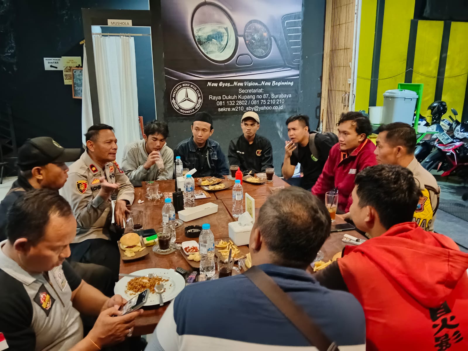 Surabaya~www.pilarcakrawala.news|Kapolsek Dukuh Pakis Kompol Achmadi, SH dengan didampingi Kanit Intelkam Iptu Totok Budiyanto mengadakan Cangkrukan Kamtibmas bersama Anggota Perguruan Silat PSHT Ranting Dukuh Pakis yang dipimpin oleh Abah Bisri Mustofa bertempat di Warkop Kangen Dukuh Kupang Surabaya semalam pukul 21.00wib,Selasa (16/1/2024).