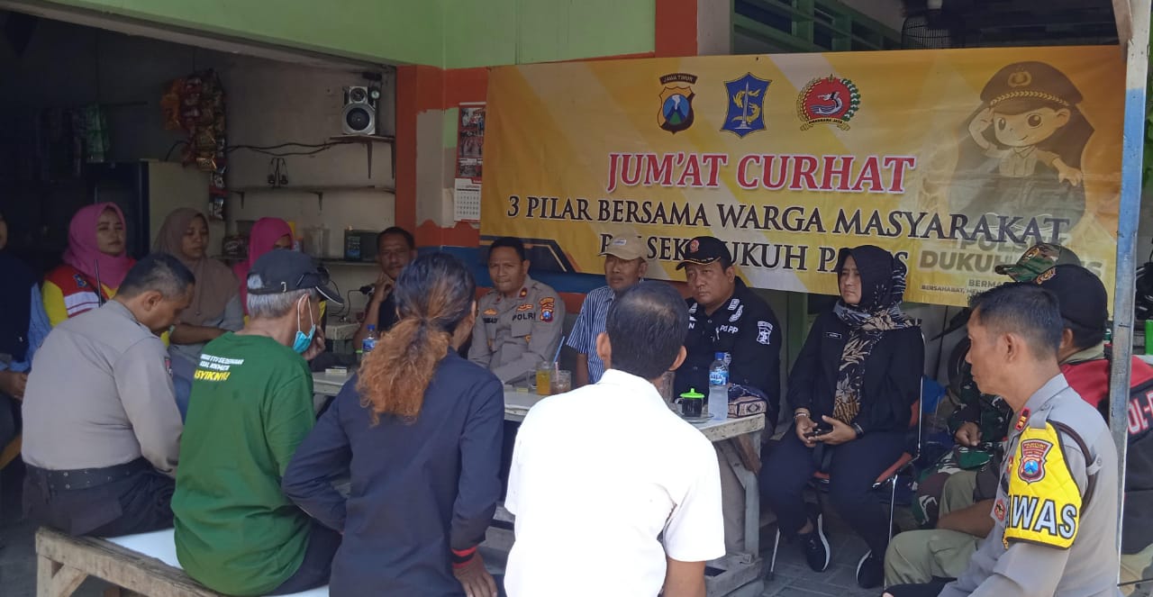 Surabaya~www.pilarcakrawala.news|Kapolsek Dukuh Pakis memimpin secara langsung kegiatan Jumat Curhat 3 Pilar bersama warga masyarakat Wonokitri gang Lengkong RW 05 kelurahan Gunungsari kecamatan Dukuh Pakis Surabaya, Jumat (27/10/2023).