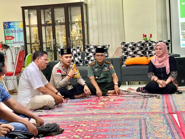 Kapolsek Dukuh Pakis Polrestabes Surabaya Kompol Mohammad Irfan,S.E,S.I.K bersama Camat Dukuh Pakis Annita Hapsari Sesoria,S.STP , Danramil Karangpilang Mayor Arh Achmad Fahrudin mengikuti rapat koordinasi dengan penyelenggara dan partai peserta Pemilu.Rabu (12/4/2023).
