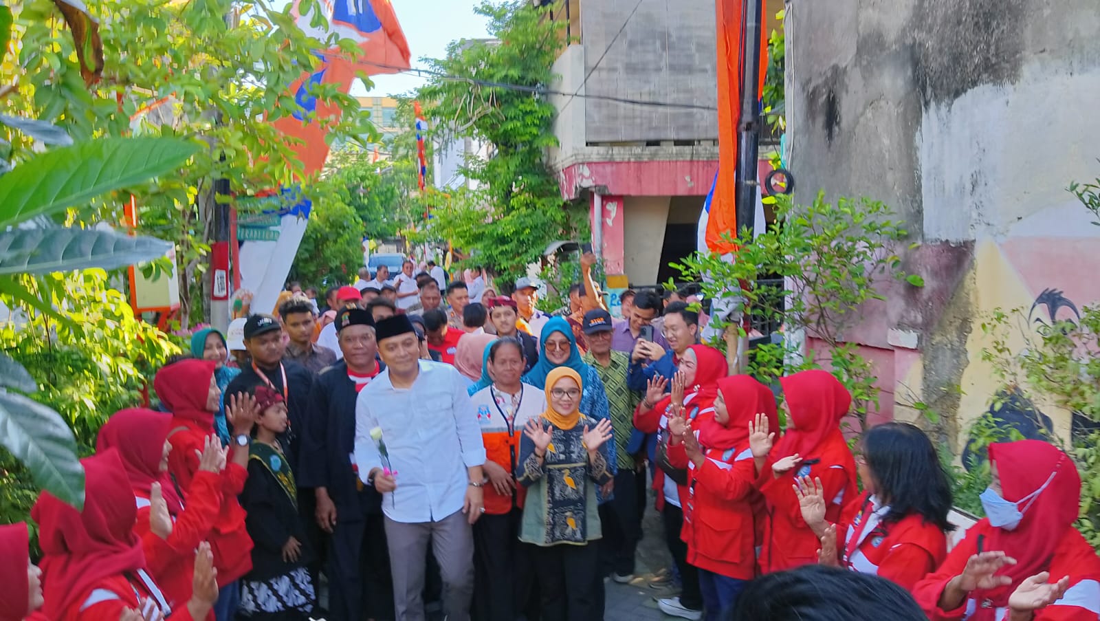 Hadir dalam kegiatan tersebut walikota Eri cahyadi ,Ketua Tim Penggerak (TP) PKK Kota Surabaya Rini Indriyani,Camat Simokerto, Kapolsek Simokerto kompol mohammad irfan,tokoh masyarakat,Pengurus kampung RW/ RT, LKMK dan juga Lurah.