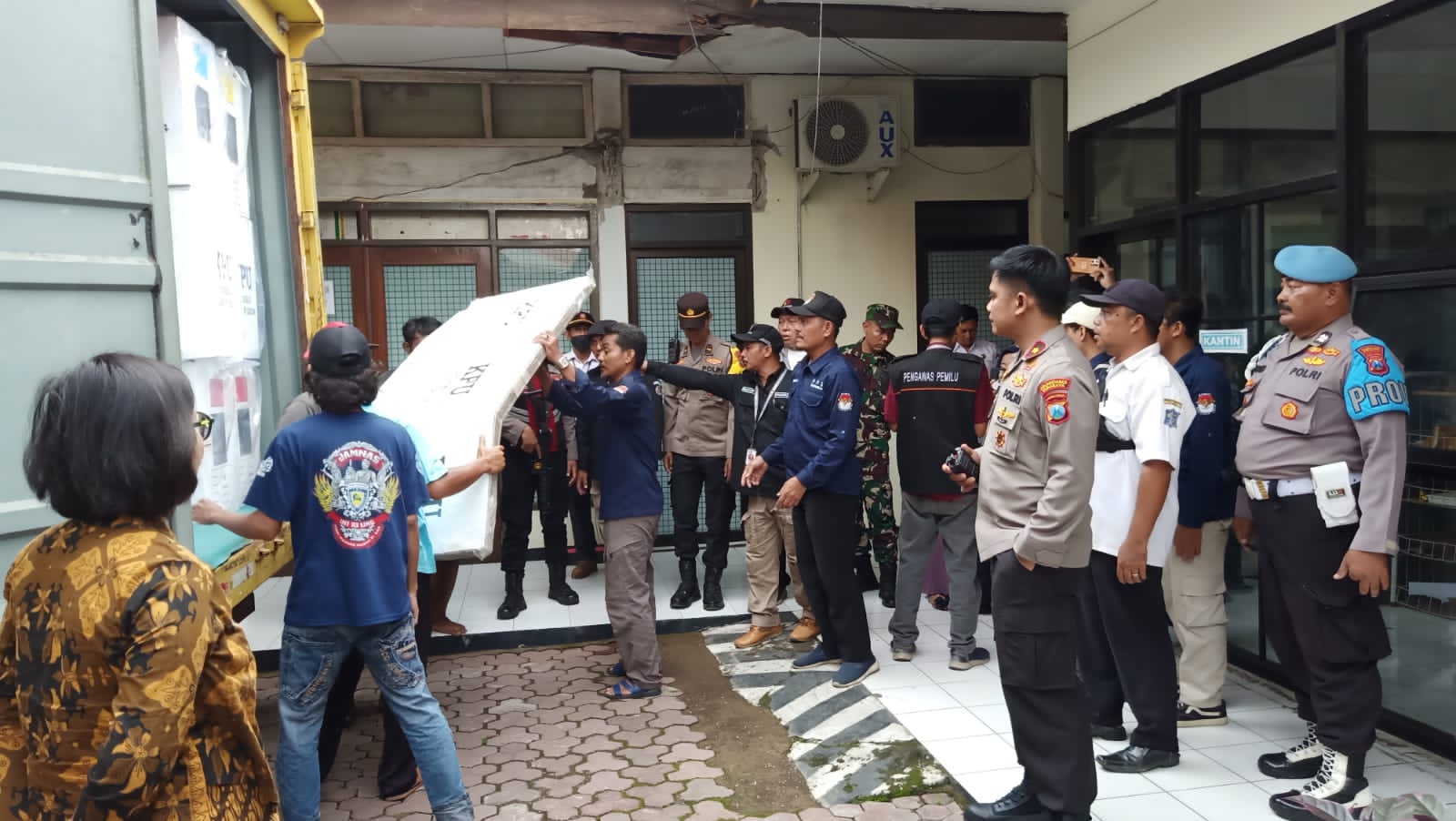 “Pukul 20.00 wib proses memasukan logistik pemilu 2024 ke gudang kecamatan simokerto masih berlangsung dalam keadaan baik dan aman kemudian nanti sudah masuk semua pintu akan digembok juga semua jendela sudah dipasangi kayu menyilang dan di police line dengan dijaga 3 anggota polsek simokerto dan 1 anggota sabhara Polrestabes Surabaya bersenjata laras panjang, penjagaan ini dilakukan 24 jam”,ujar Kapolsek Simokerto.(Bs)