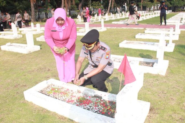 Dipimpin Kapolrestabes Surabaya, Kapolsek Tambaksari mengikuti Kegiatan Ziarah ke Taman Makam Pahlawan, Selasa (27/6/2023).