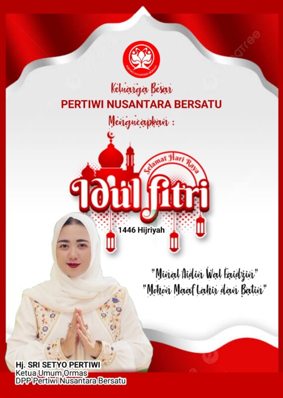 Ketua Umum Organisasi Kemasyarakatan (Ormas) Pertiwi Nusantara Bersatu, Hj. Sri Setyo Pertiwi, atau yang akrab disapa Neng Tiwi, mengajak seluruh masyarakat untuk menjadikan Idul Fitri sebagai momentum memperkuat persaudaraan dan membangun kembali hubungan yang mungkin sempat renggang.