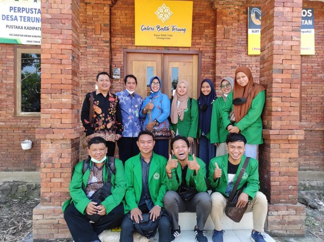Mahasiswa KKN UNSURI kelompok 10 berkunjung ke rumah pengrajin batik tulis khas desa Terung Wetan, Krian, Sidoarjo, Sekaligus memerkan motif-motif batik Terung Wetan.