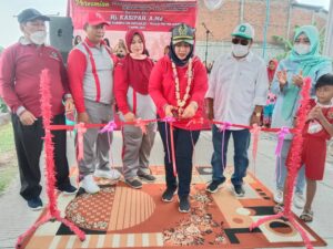 Prosesi pemotongan pita tanda peresmian jalan beton di desa Randegan Tanggulangin Sidoarjo yang di lakukan Hj. Kasipah A. Md anggota DPRD Kabupaten Sidoarjo Sekretaris Komisi D.