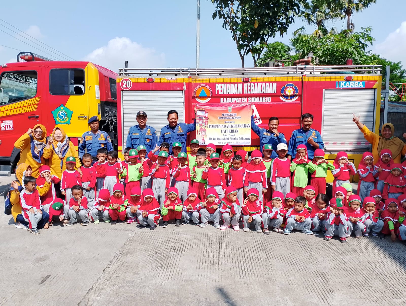 Sidoarjo~www.pilarcakrawala.news|Dalam suasana keceriaan dan antusiasme, kelompok bermain ( KB) Wahid Hasyim dan TKM NU 126 WACHID HASYIM dari Desa Tulangan, kecamatan Tulangan, kabupaten Sidoarjo, menjalankan kunjungan edukatif mereka ke unit Damkar di Krian hari ini 21 februari 2024. Dalam kesempatan yang berharga ini, mereka memilih topik inspiratif ” Bila aku besar nanti, damkar pahlawanku ” sebagai pembahasan utama.