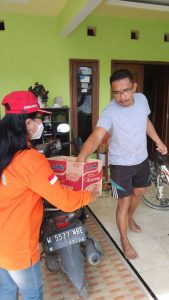 Penggalangan dana door to door oleh para relawan di desa Keramat Jegu, Sidoarjo.