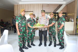 Sidoarjo~www.pilarcakrawala.news|Di hari ulang tahun Bhayangkara ke-77 Mako Polresta Sidoarjo mendapatkan kejutan dan kado dari jajaran TNI wilayah Kabupaten Sidoarjo,Senin (3/7/2023).
