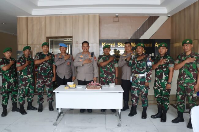 Sidoarjo~www.pilarcakrawala.news|Di hari ulang tahun Bhayangkara ke-77 Mako Polresta Sidoarjo mendapatkan kejutan dan kado dari jajaran TNI wilayah Kabupaten Sidoarjo,Senin (3/7/2023).