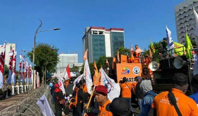 Dalam aksi kali ini kelompok buruh membawa sejumlah isu, antara lain meminta kenaikan upah 2024 bagi buruh. “Kita menuntut pemerintah menaikkan upah sebesar 15 persen,” kata Nurudin.Rabu (9/8/2023).