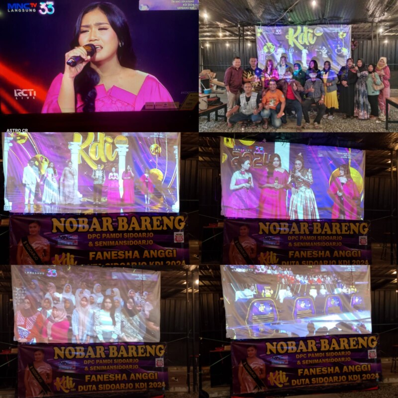 Sidoarjo~www.pilarcakrawala.news|Acara nonton bareng (nobar) untuk mendukung Fanesha Anggi, duta Sidoarjo di ajang KDI 2024, berlangsung meriah di Kafe Angkringan, Desa Modong, Kecamatan Tulangan, Kabupaten Sidoarjo. Acara yang diselenggarakan oleh Dewan Pimpinan Cabang Persatuan Artis Musik Melayu Dangdut Indonesia (DPC PAMDI) Sidoarjo dan para seniman setempat ini tidak hanya menjadi ajang silaturahmi bagi para pecinta musik dangdut, tetapi juga bentuk dukungan nyata bagi Fanesha Anggi yang sedang berjuang di kompetisi dangdut bergengsi, Kontes Dangdut Indonesia (KDI) 2024, yang disiarkan langsung oleh MNCTV.