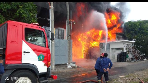 Pilar Cakrawala ~ Sidoarjo, PT Group Cemerlang Plastindo yang berada di RT 6 RW II, Desa Randegan Kecamatan Tanggulangin, Sidoarjo, ludes terbakar, Rabu (24/11/2021). Api pertama kali diketahui sekitar pukul 10.30 WIB.