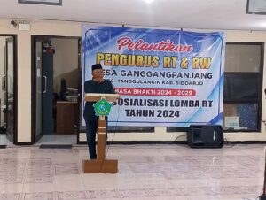 Sidoarjo~www.pilarcakrawala.news|Desa Ganggang Panjang kecamatan Tanggulangin kabupaten Sidoarjo hari ini Rabu 24 Januari 2024 menggelar upacara pelantikan pengurus RT dan RW yang baru masa bakti 2024 – 2029. Acara bersejarah ini disertai dengan sosialisasi lomba RT sebagai wujud semangat kebersamaan dan meningkatkan partisipasi masyarakat.