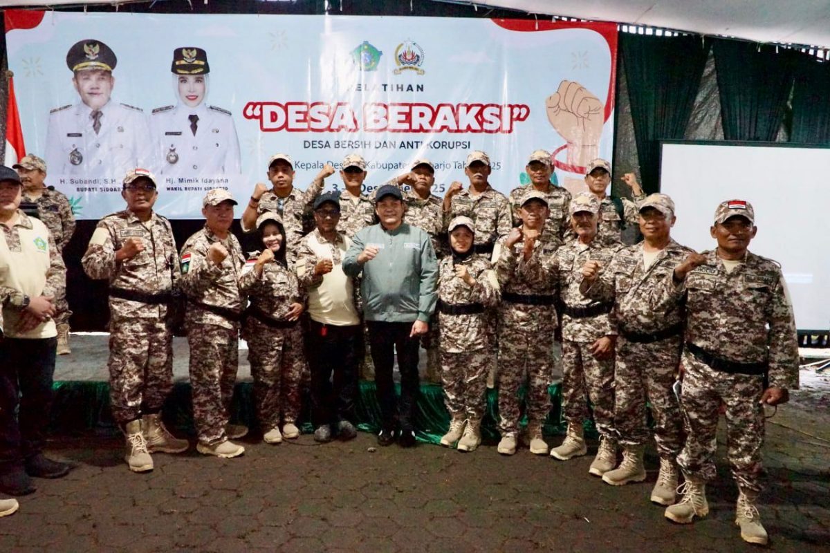 Sidoarjo//www.pilarcakrawala.news|Pemerintah Kabupaten Sidoarjo menggelar Retret dan Pelatihan “Desa Beraksi” (Desa Bersih dan Anti Korupsi) bagi seluruh kepala desa se-Kabupaten Sidoarjo. Kegiatan berlangsung selama tiga hari, 3–5 Desember 2025, di Puslat Rindam V/Brawijaya Malang. Ratusan kepala desa mendapat pembinaan langsung dari pelatih TNI Rindam V/Brawijaya, serta pendalaman materi dari Polresta Sidoarjo, Kejaksaan, hingga Komisi Pemberantasan Korupsi (KPK).